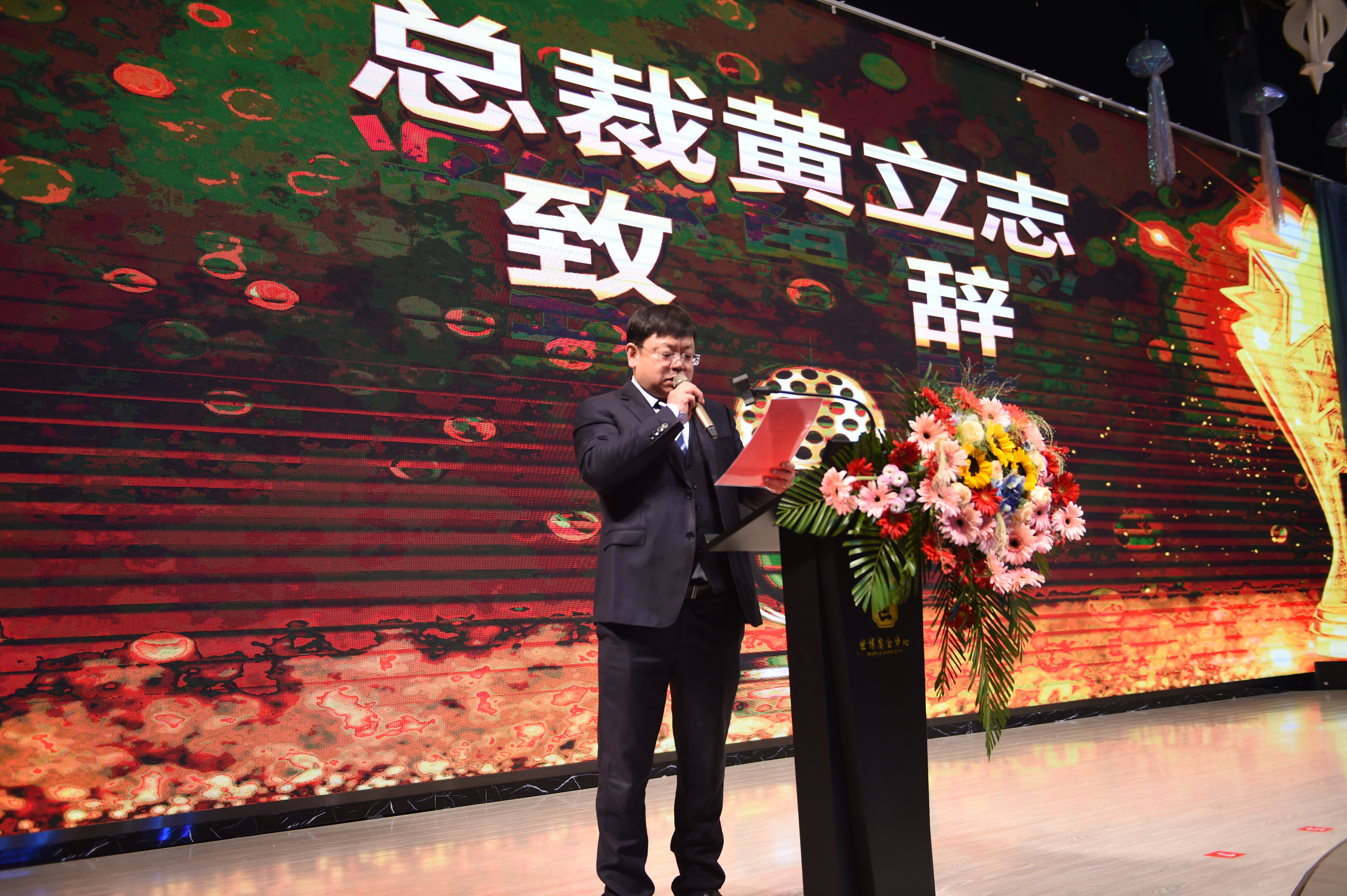 頒獎典禮結束后,由公司總裁黃立志先生致辭,黃總對全體員工表達了由衷感謝,感謝各位員工在過去一年的辛勤付出,并對優秀員工進行了表揚,希望全體員工向優秀員工學習,最后,黃總向大家致以最誠摯的祝福,宣布晚宴正式開始!